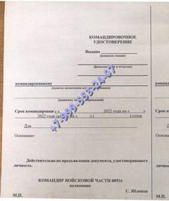 Заказать командировочное удостоверение военнослужащего в Киренске можно и по иным причинам, например, необходимо срочно ехать на учения или в зону боевых действий. В таком случае следует обращаться к руководству с заявлением. Если человек потерял, или испортил документы, он может обратиться в нашу компанию. Купить командировочное удостоверение военнослужащего с доставкой мы предлагаем недорого.